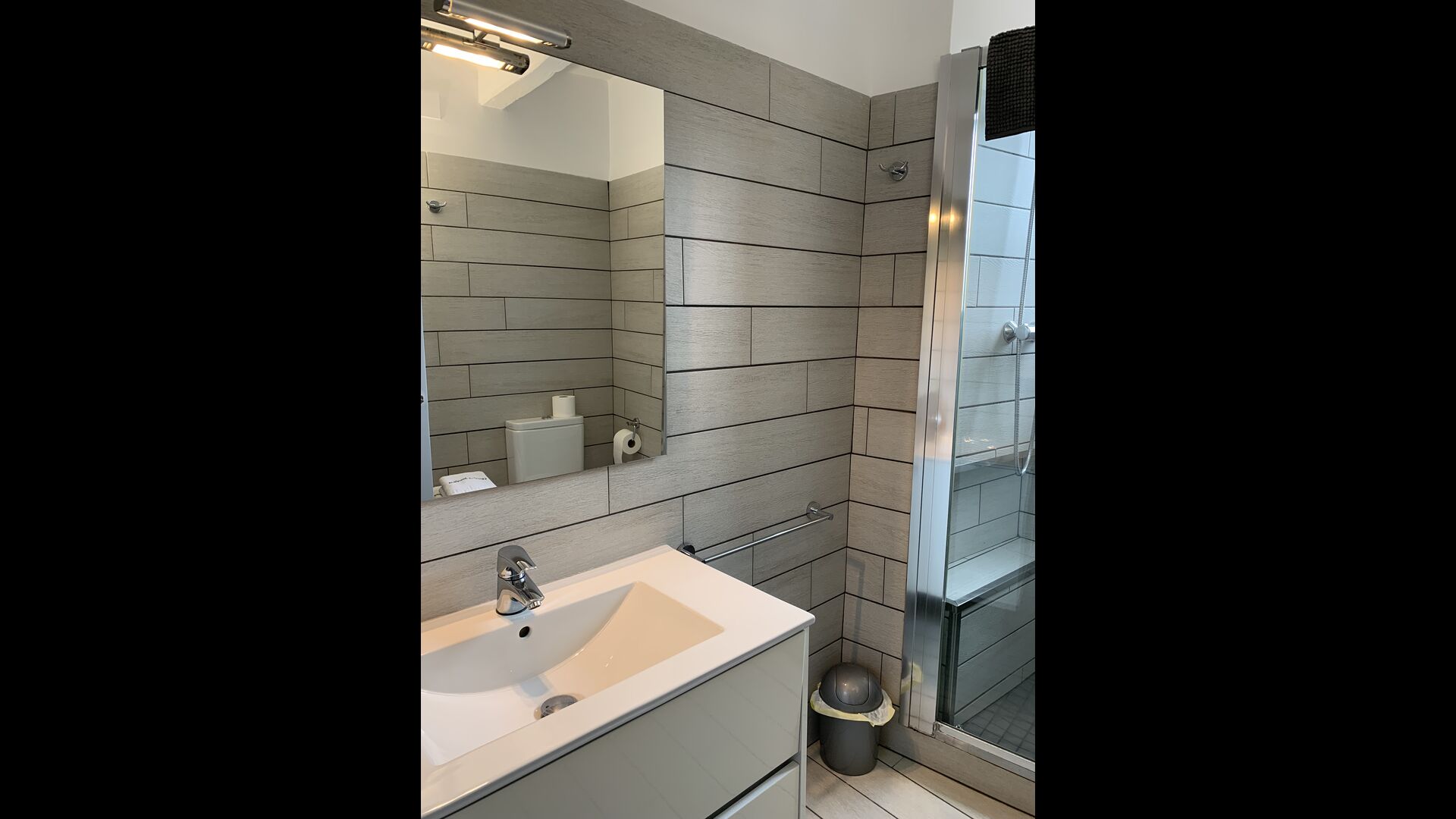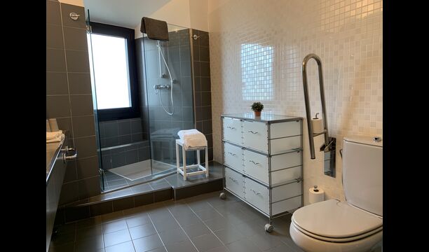 The house has six bedrooms of high quality. Three of these are double rooms and the other three are triple rooms - they are spread over the three floors of the holiday house. They are all comfortably furnished and all have a flat-screen TV. The rooms are designed and constructed as smaller suites with en suite bathrooms.