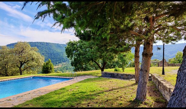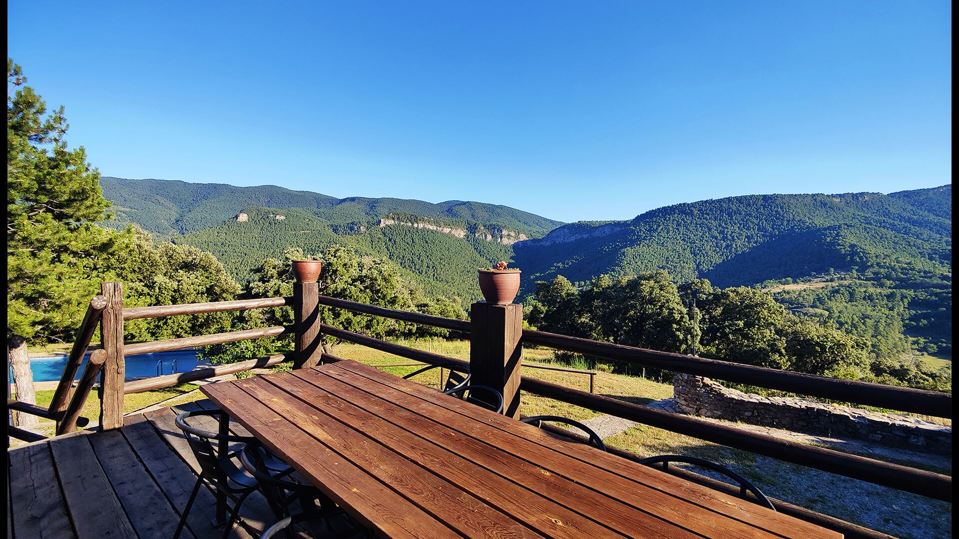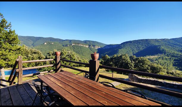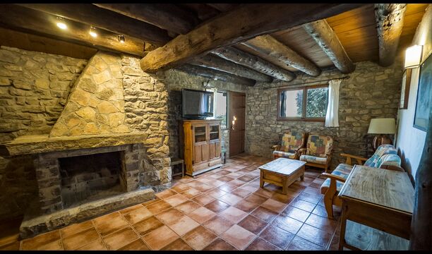 The property blends traditional Pyrenean character—stone walls, wooden elements and warm natural materials—with modern comfort. Generous communal areas and outdoor terraces make it perfect for long summer days, shared meals and relaxing with panoramic mountain views.