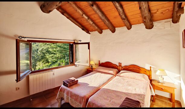 Mas Sobarocar comfortably accommodates up to 16 guests, with the possibility of adding two extra beds for children. The house features eight double bedrooms and bathrooms arranged to provide both comfort and privacy for groups travelling together.