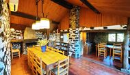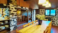 The house offers inviting common areas for relaxing and spending time together, including comfortable lounges and dining spaces. Fireplaces add warmth and atmosphere, while terraces and outdoor areas invite guests to enjoy the mountain setting during summer.