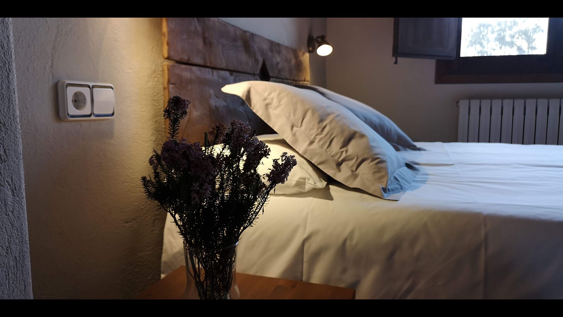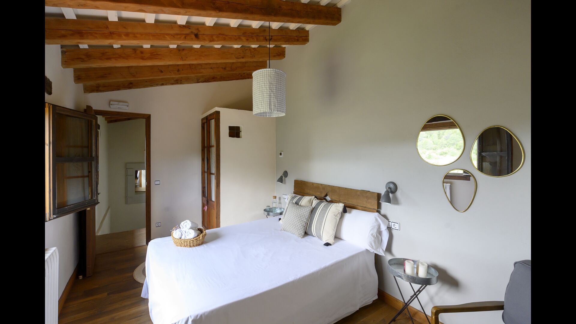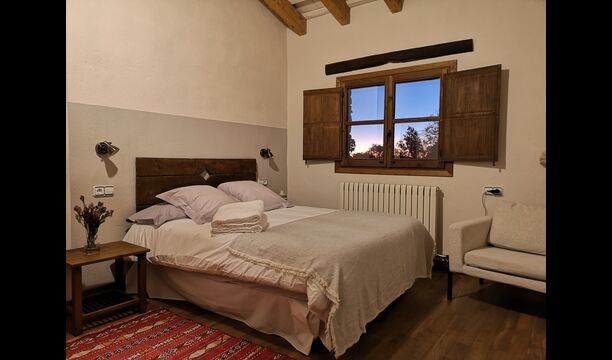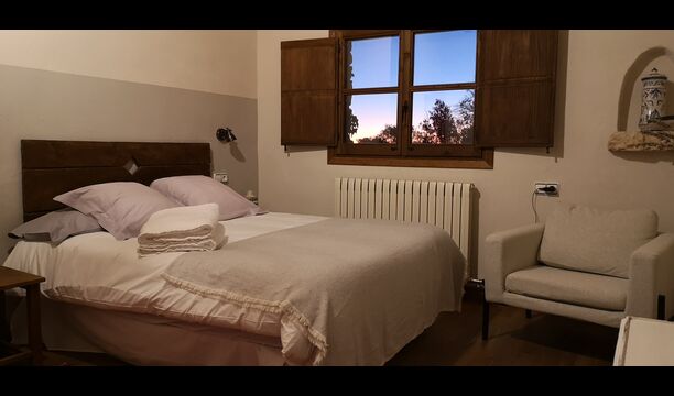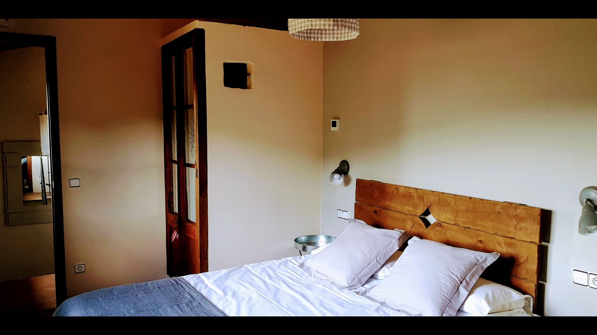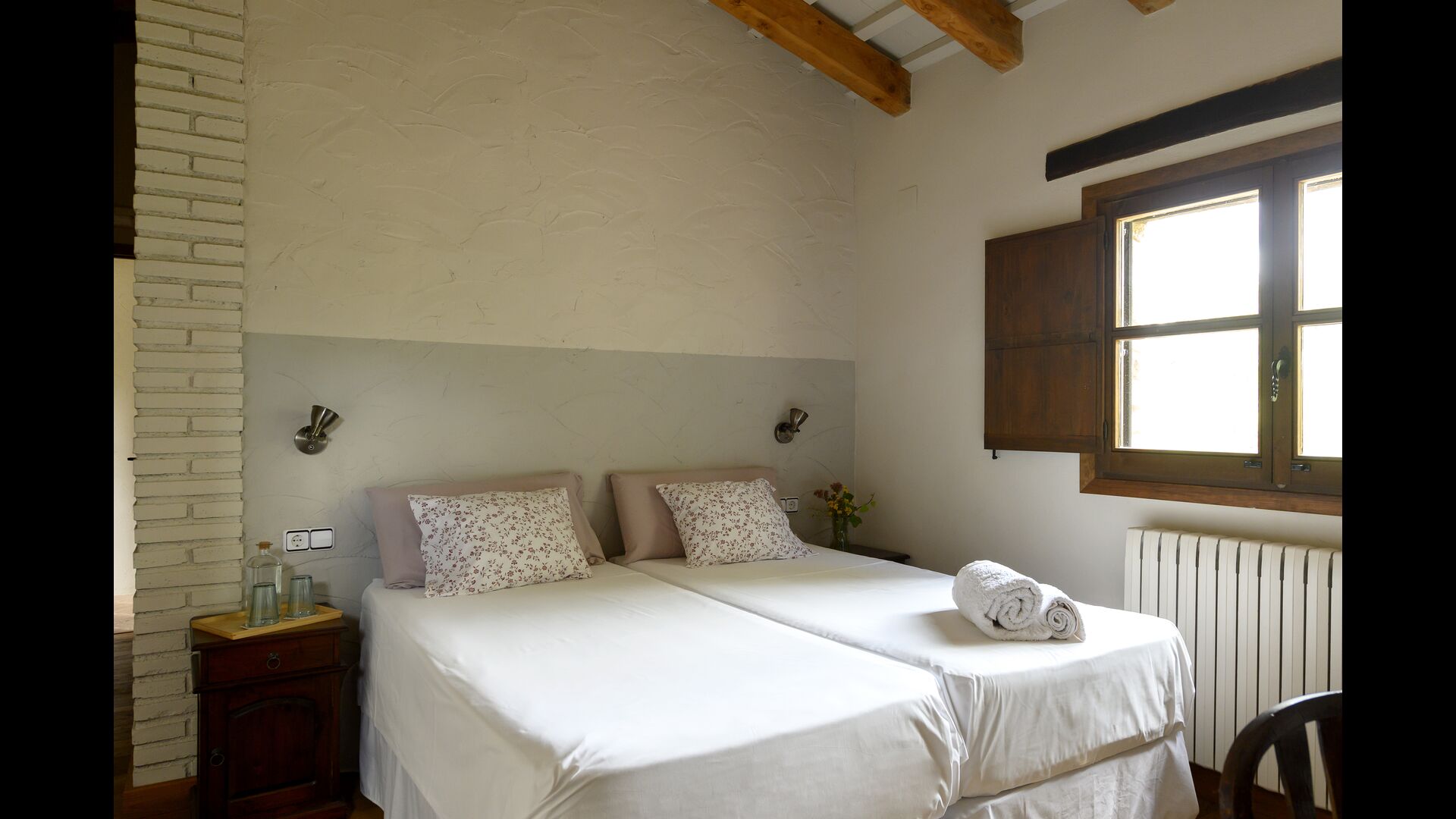 - Mont-Ral: A room with 1 double bed and an ensuite bathroom, coming with a classical, small Catalan wooden table, and views of the garden and the mountains. The bed’s dimensions are 150x190cm.
