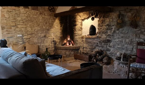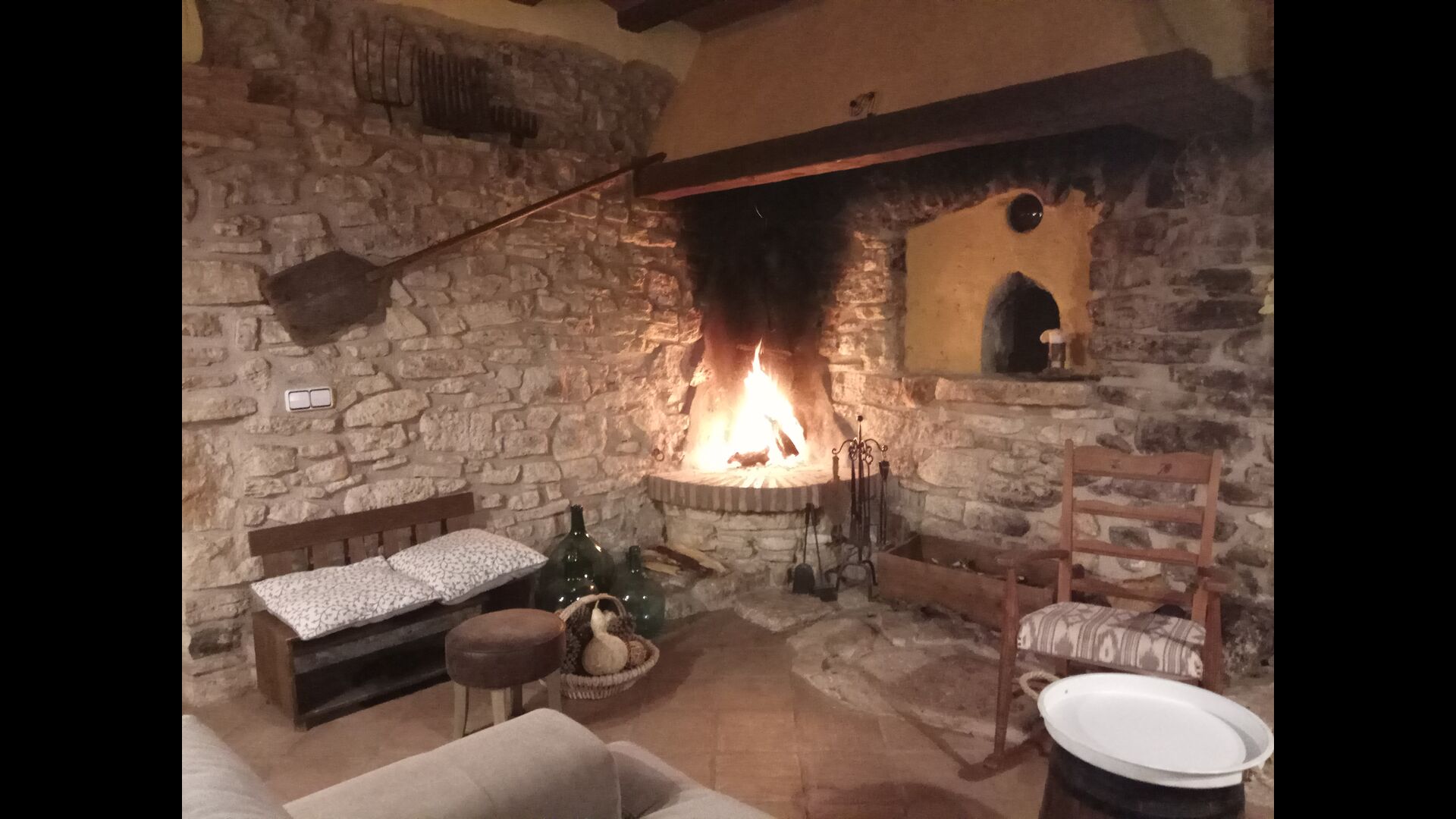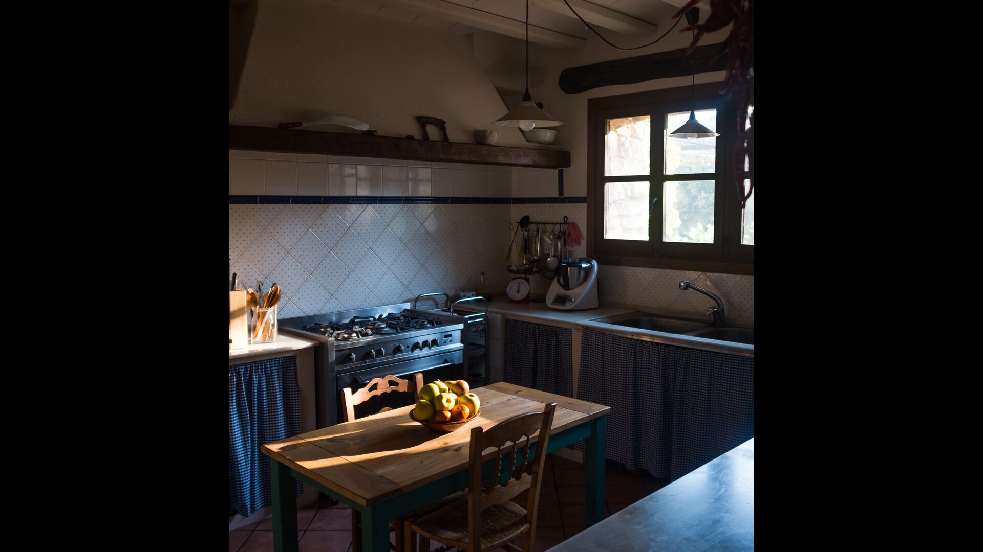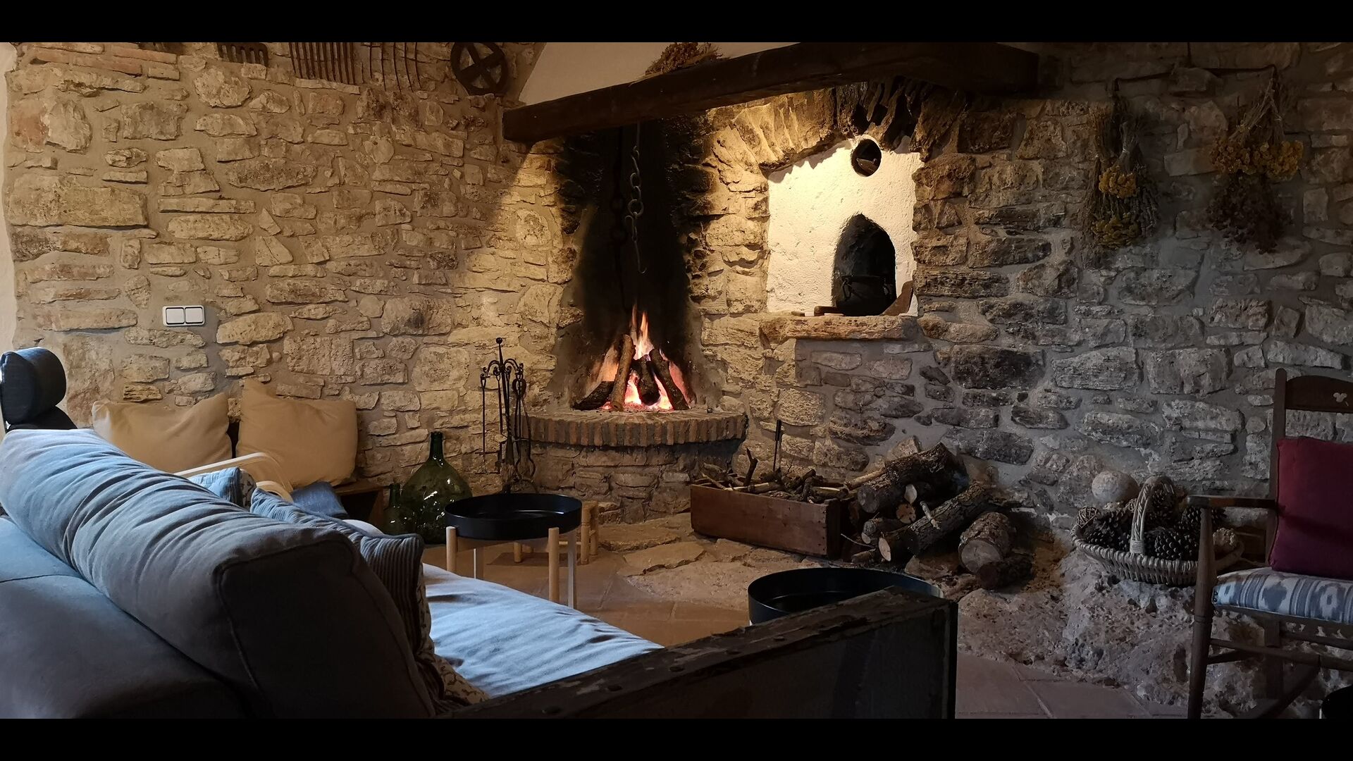 On the ground floor you will also find a longue/living room-area, coming with a traditional fireplace. Sit in the comfortable sofa, close by the fire, and relax to the gentle snapping and popping sounds of the fire, as evening gives way to night. The cozy and classic stone walls only add to the sensation of living in a tailor-made slice of Catalan serenity, and the it is an ideal place to relax alone or with friends/family; relax, dine, or enjoy lively conversations long into the hours of the night. You will also find the kitchen on the ground floor.