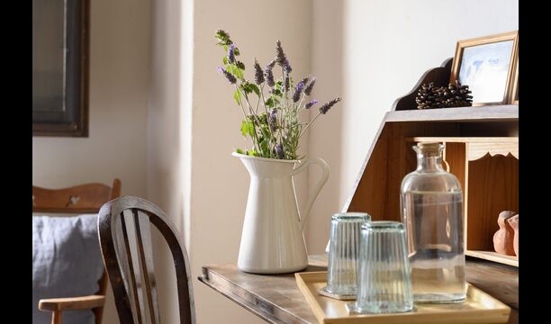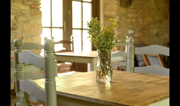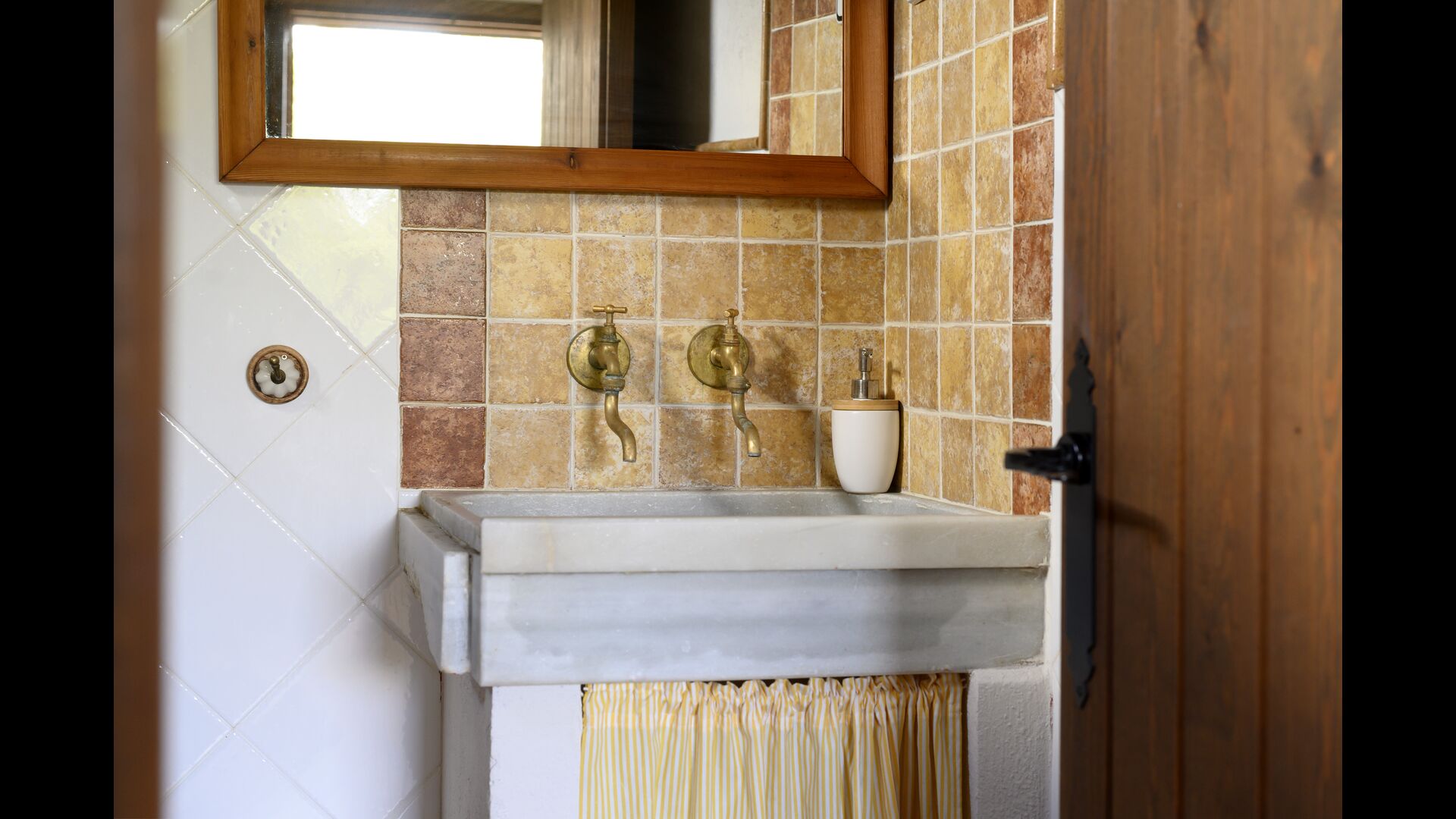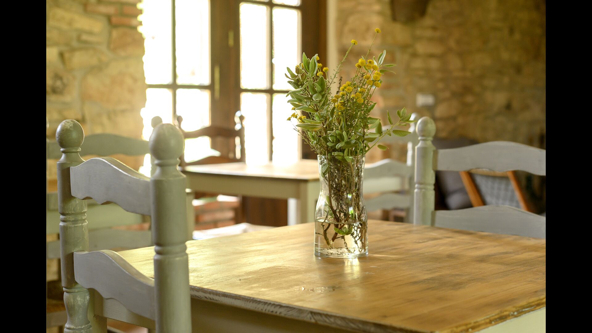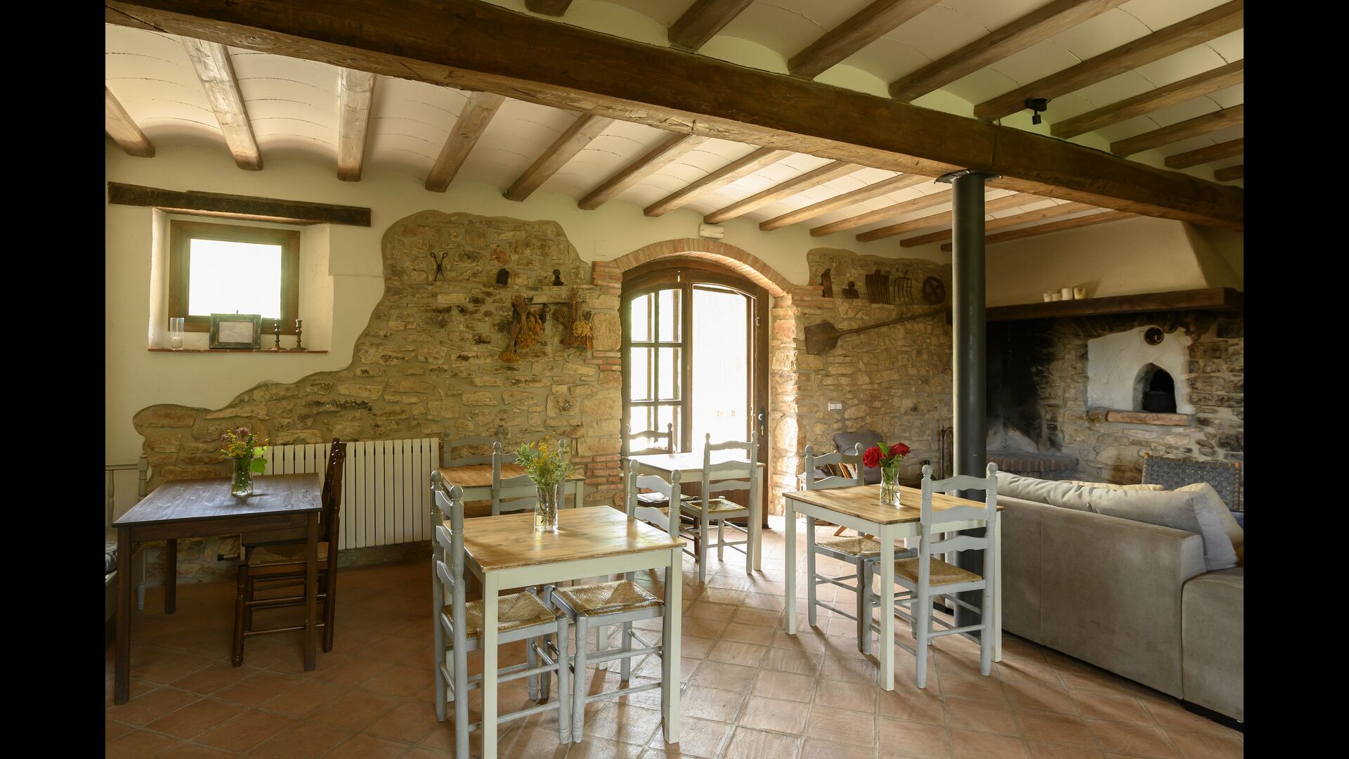 On the ground floor you will also find a longue/living room-area, coming with a traditional fireplace. Sit in the comfortable sofa, close by the fire, and relax to the gentle snapping and popping sounds of the fire, as evening gives way to night. The cozy and classic stone walls only add to the sensation of living in a tailor-made slice of Catalan serenity, and the it is an ideal place to relax alone or with friends/family; relax, dine, or enjoy lively conversations long into the hours of the night. You will also find the kitchen on the ground floor.