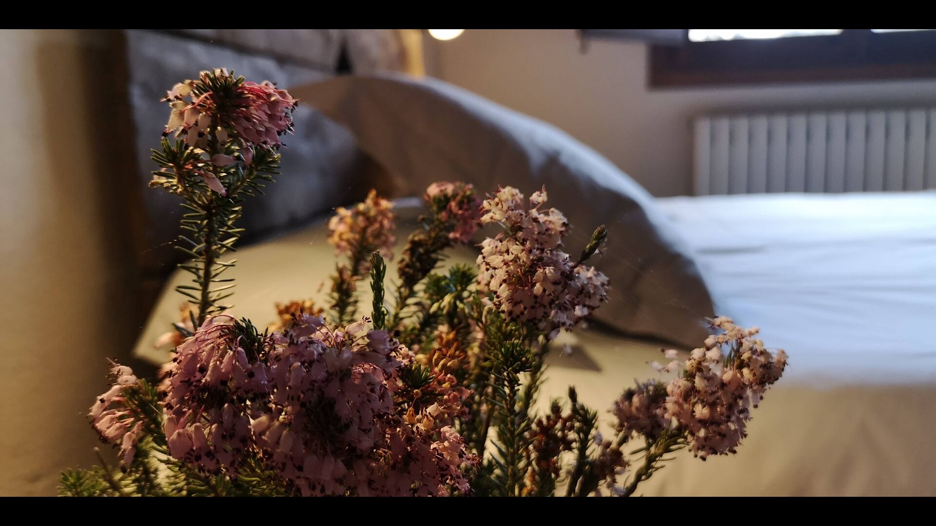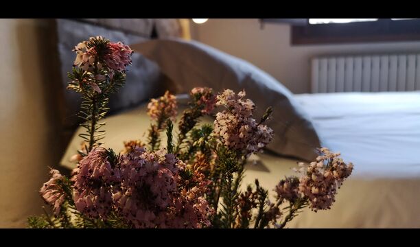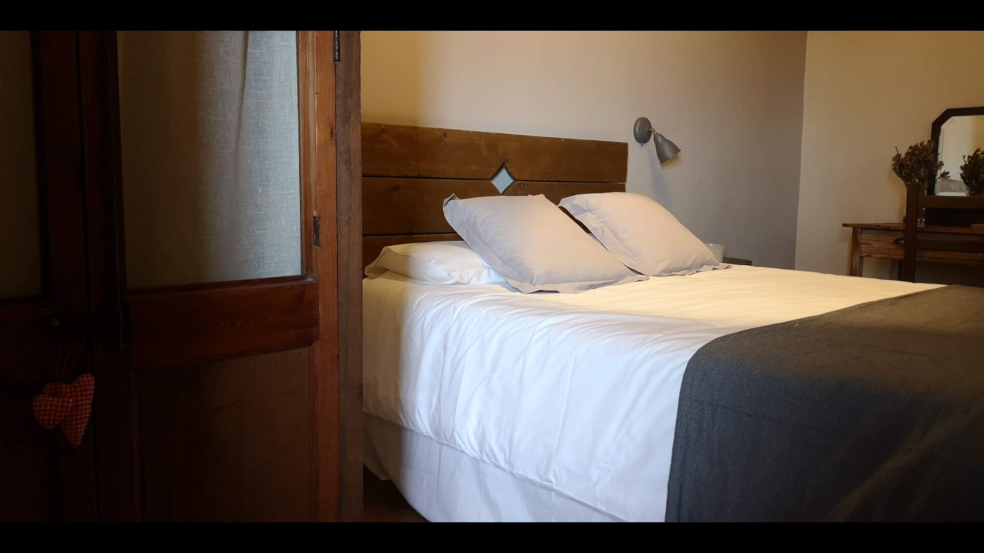 - Farena: A room with 1 double bed, two small nightstands with lamps, and an ensuite bathroom, coming with views over the garden and the mountains, the option for an extra bed (35 EUR), and allows for pets. The bed’s dimensions are 150x190cm.