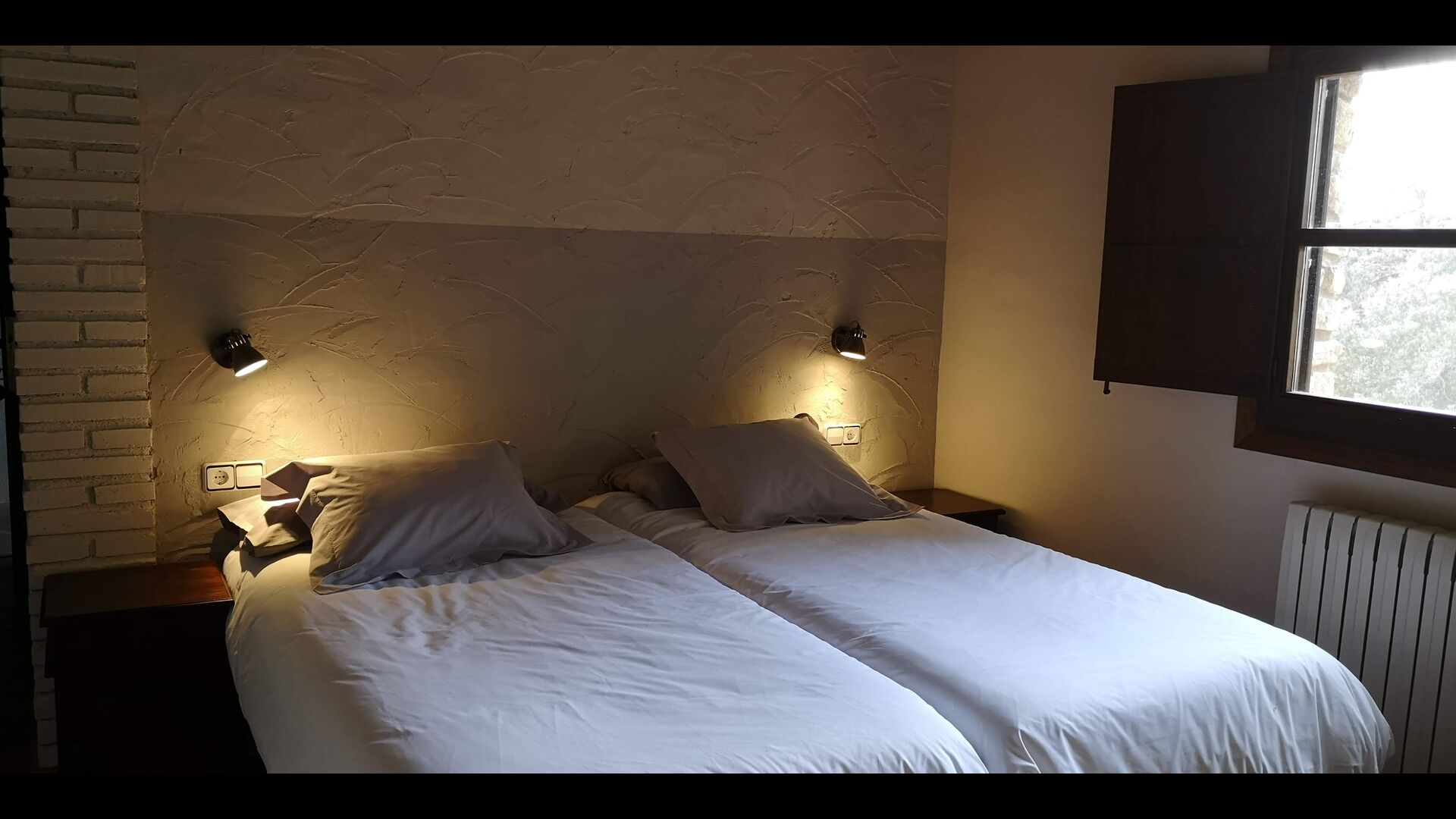 - Pintell: A room with 2 single beds, and an ensuite bathroom, coming with a reading area and views of the garden. The dimensions of a single bed is 90x190cm.
