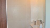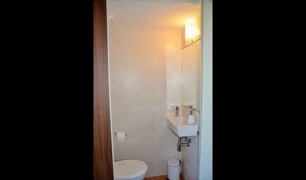 The lower floor has the common area in two parts. One part for dining with a cosy, very big round dining table, and ensuite the sitting room with different beautiful sitting chairs and a TV. In connection, you will find the cozy little kitchen. Also, there are two bedrooms and two bathrooms. One bedroom has 3 single beds, and the other is a double room, which has a very nice small conservatory in connection and direct outside access.