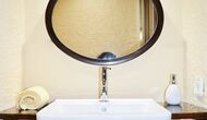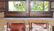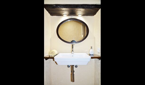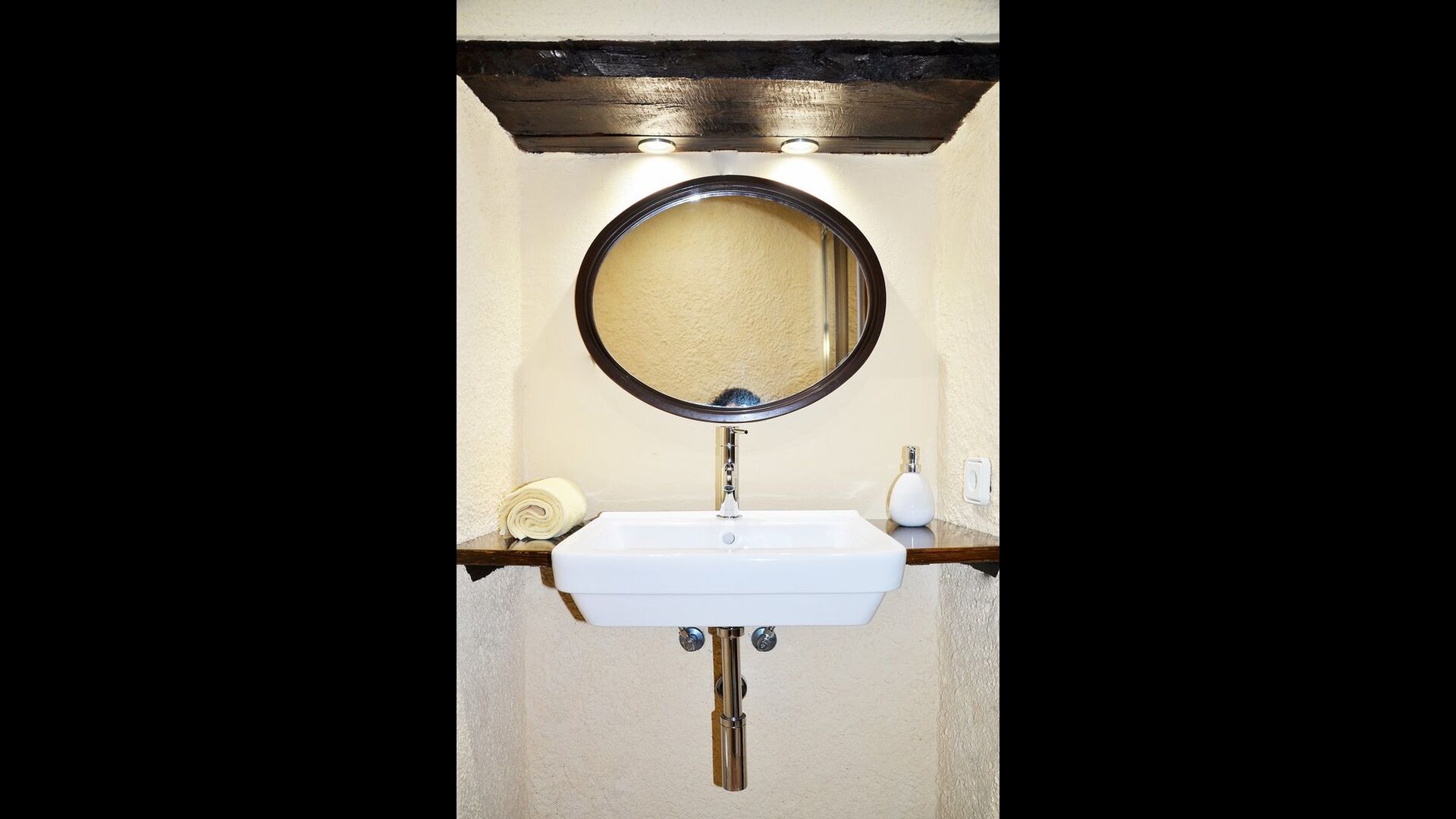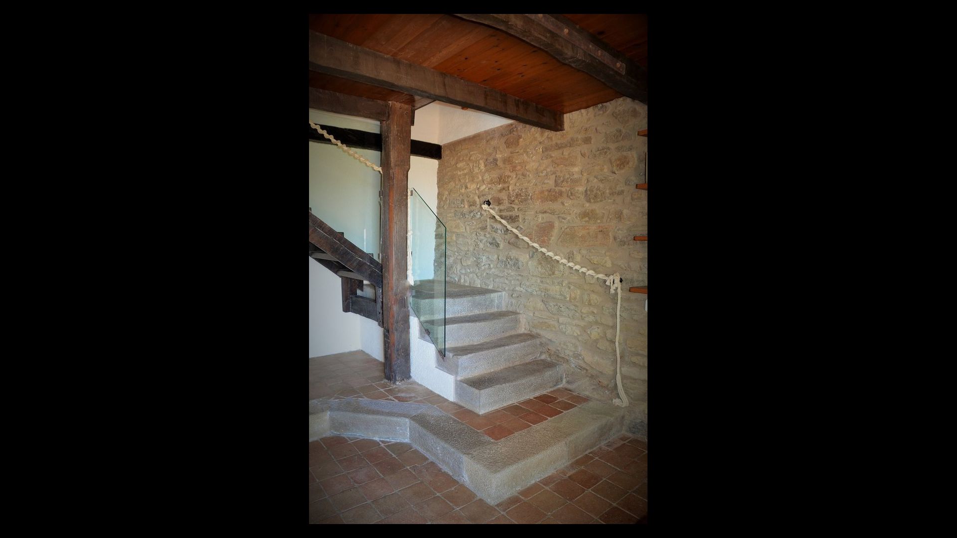 In the first floor, to the left, there is a very nice double bedroom, with some very beautiful details and garden view. Also, a small toilet has been installed. Then, there is the biggest bedroom, with a double bed and two balconies with view to the pool area and the mountains. The desk where many books have been formed is still there as a nice reminder of the history of the house. If necessary, here some extra beds (against supplement) will easily fit, if your group is bigger than 11. This bedroom has a bathroom ensuite. Finally, there is the third, spacious double room with bathroom ensuite.
