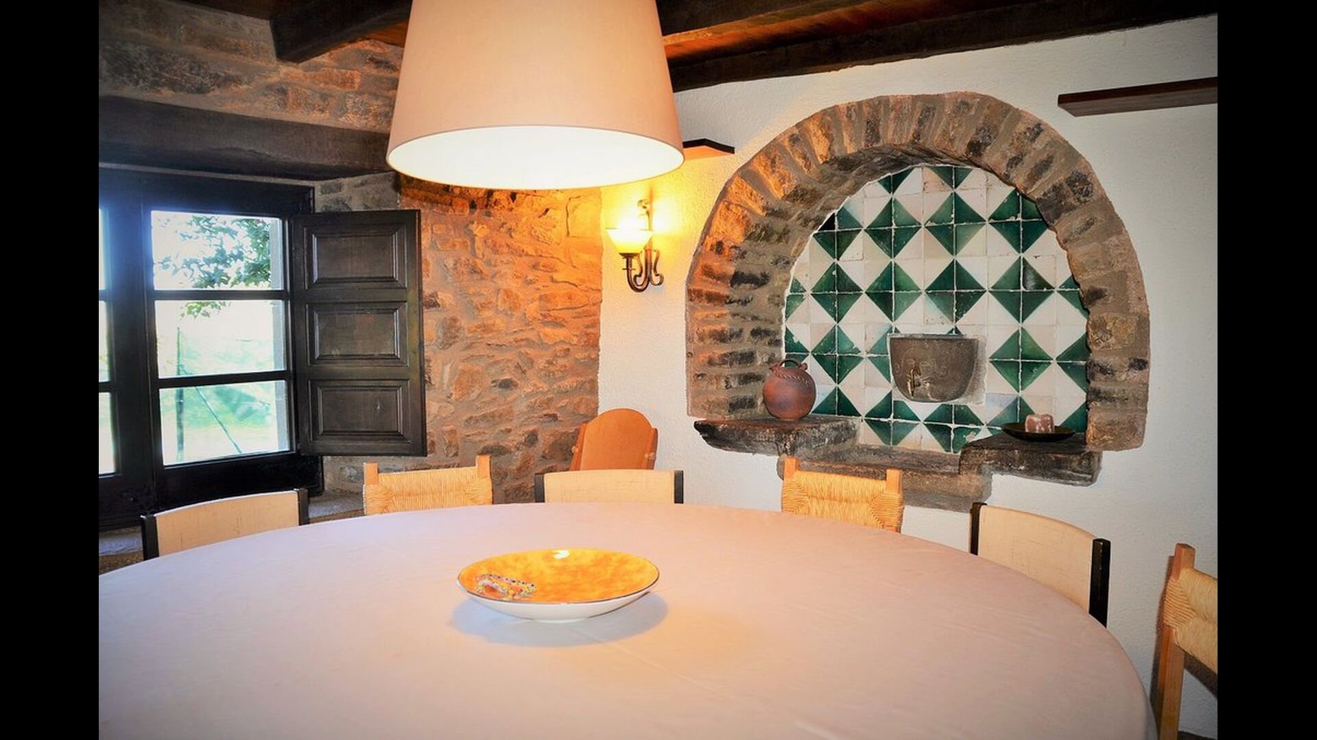 It is easy to imagine, how the father of the present owner, who was a famous Catalan author and philosopher got his inspiration. Inside the house, the careful restoration has preserved a touch of this, especially the cosy sitting room with beautiful chairs in the ground floor and the very large master bedroom on the first floor, where the desk with garden and valley view is still there.